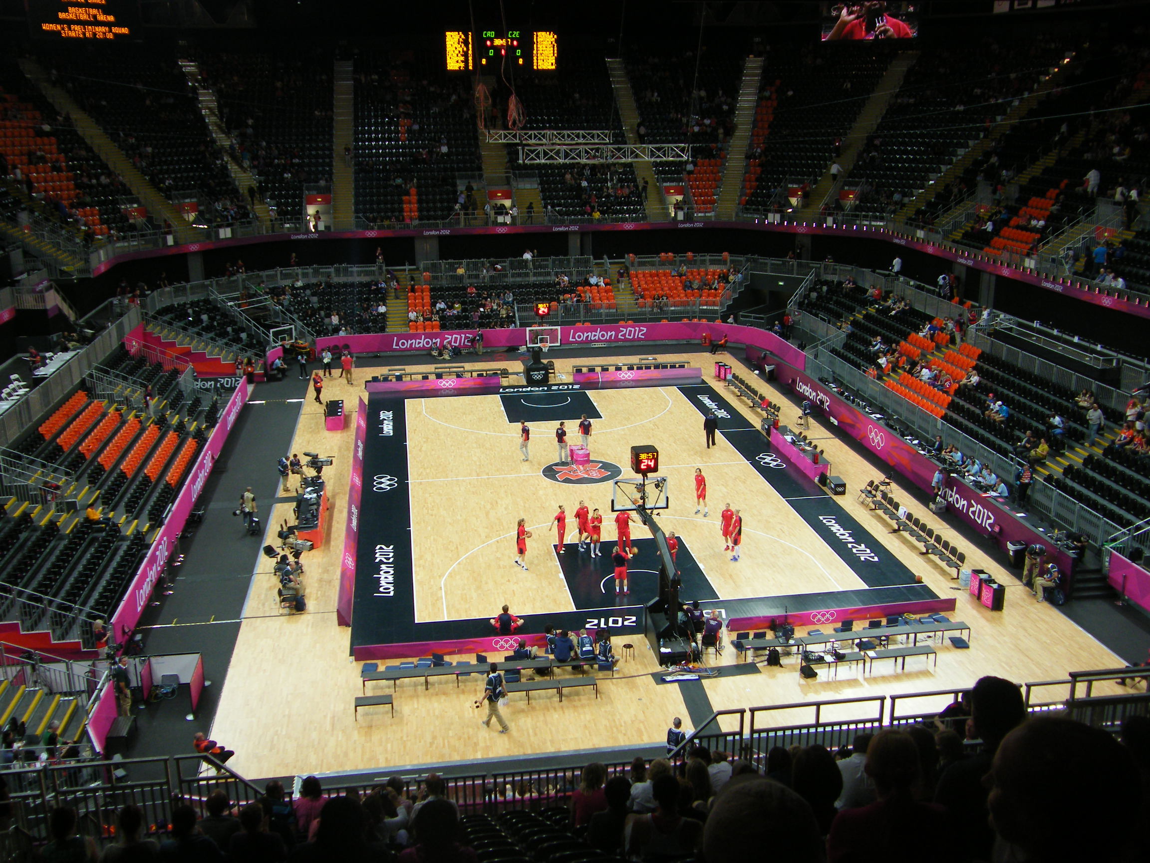 Après m’être baladée et avoir profiter de l’ambiance (rien que pour ça, cela vaut la peine de pouvoir aller voir une compétition dans le parc), direction le Basketball Arena pour un peu de basket féminin! Là encore, la salle est bien faite, et même tout en haut avec un billet à £20, la vue est parfaite. Même si vous n’aimez pas le basket, l’ambiance vaut le détour! Un chauffeur de salle fait danser et chanter le public! YMCA, la Macarena, tout y passe! On ne peut pas dire que l’on s’ennuie aux quart-temps et entre deux matchs. Il y a même des danseuses et des rois de la corde à sauter qui viennent nous faire un petit spectacle. Il y a aussi la Kiss Cam. Si elle s’arrête sur vous, il faut faire un bisous à votre voisin… en espérant que vous vous connaissiez vraiment… Pas de doute, c’est de la compétition à l’américaine et le public fait partie intégrante du show!