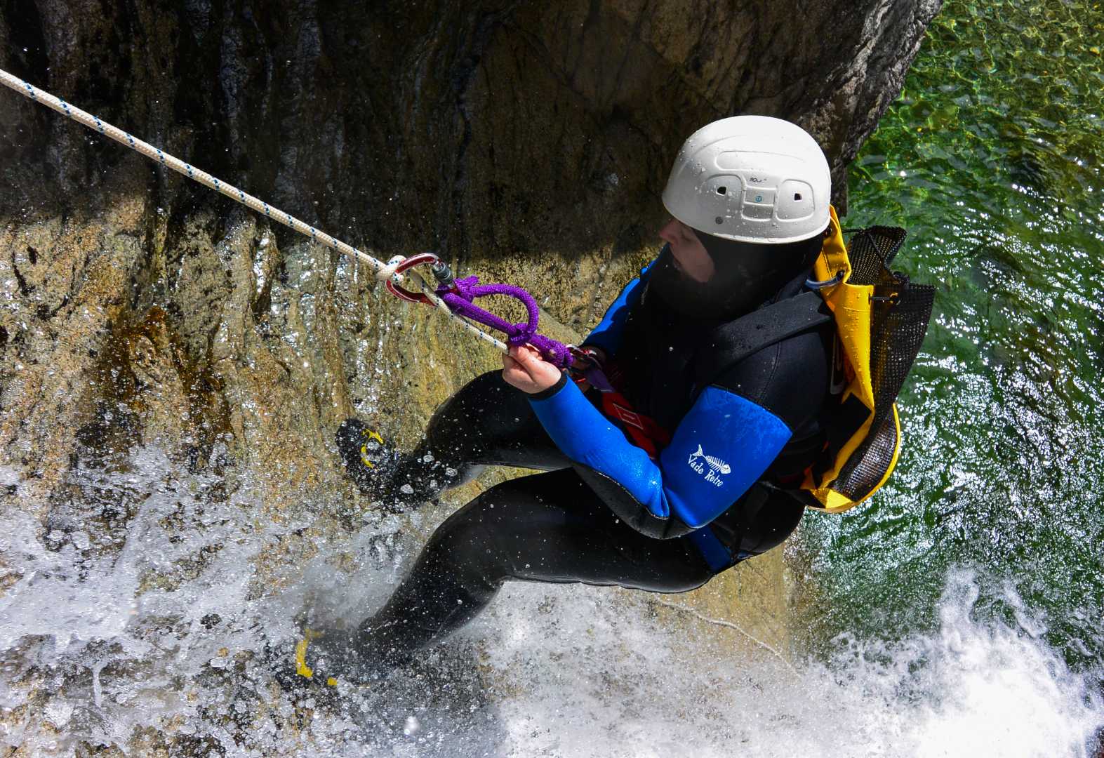 Un petit raté pour moi qui aurait pu mener à une entorse du pouce et des bleus sur les fesses, quelques acrobaties, quelques tremblements de froid et une descente en rappel dans une cascade, plus tard et nous approchons déjà de la fin du canyon.