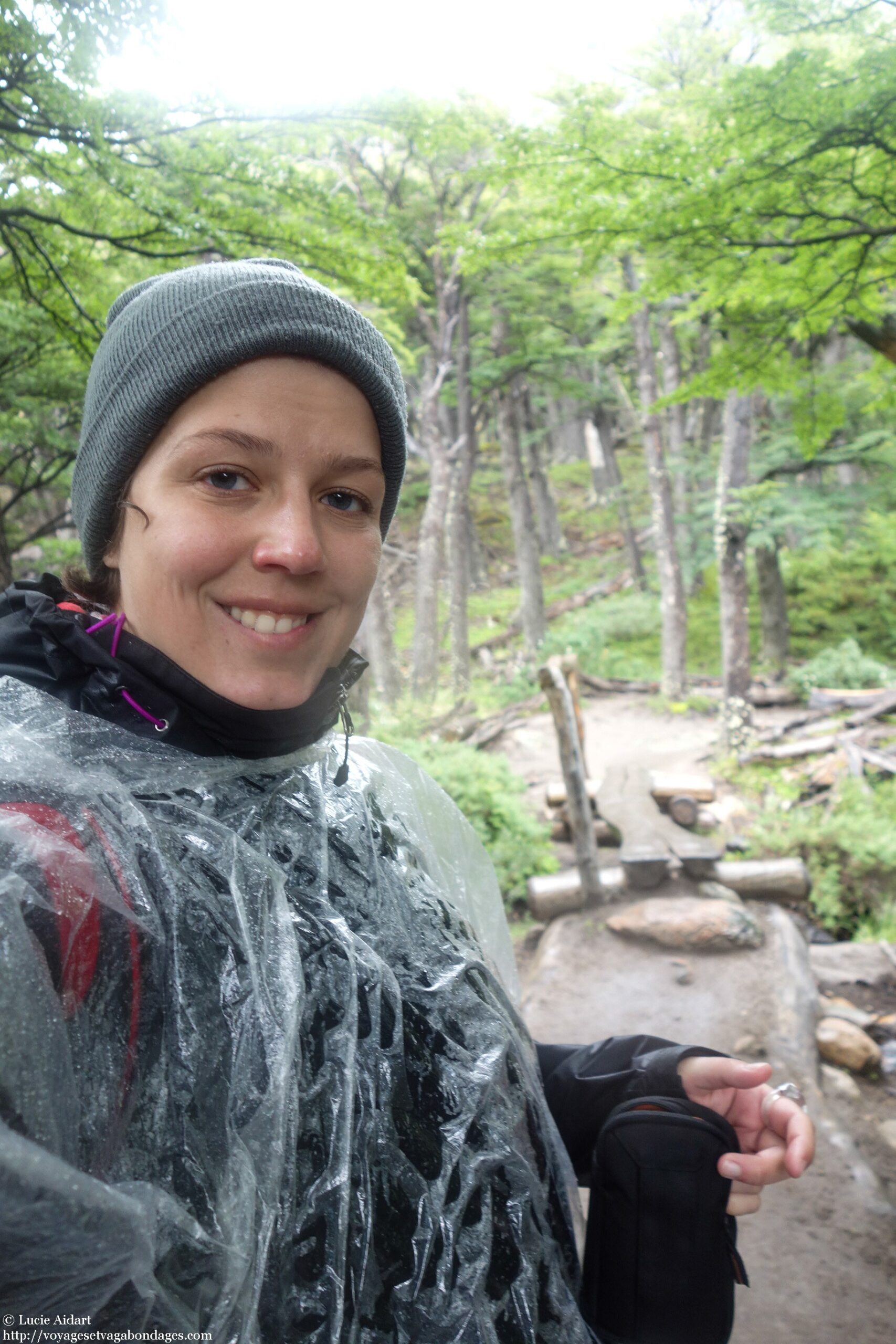 Un matin, il faisait grand soleil dans la vallée et je me suis donc motivée pour la randonnée Fitz Roy, qui prend environ 8 ou 9h aller-retour. Malheureusement, beau temps dans la vallée ne veut pas dire beau temps en hauteur et j’ai été accueillie plus haut par des nuages bas, m’empêchant de voir quoi que ce soit, un vent glacial à décorner un bœuf, de la pluie torrentielle, de la grêle, etc. En raison du vent, je n’ai pas pu faire la dernière partie de la randonnée, car c’était trop dangereux, mais j’ai vraiment apprécié ces moments seule dans la nature et j’étais fière de ma randonnée de 8h en solo. Je suis rentrée épuisée, mais heureuse et je suis sûre que par beau temps, les paysages doivent être magnifiques.