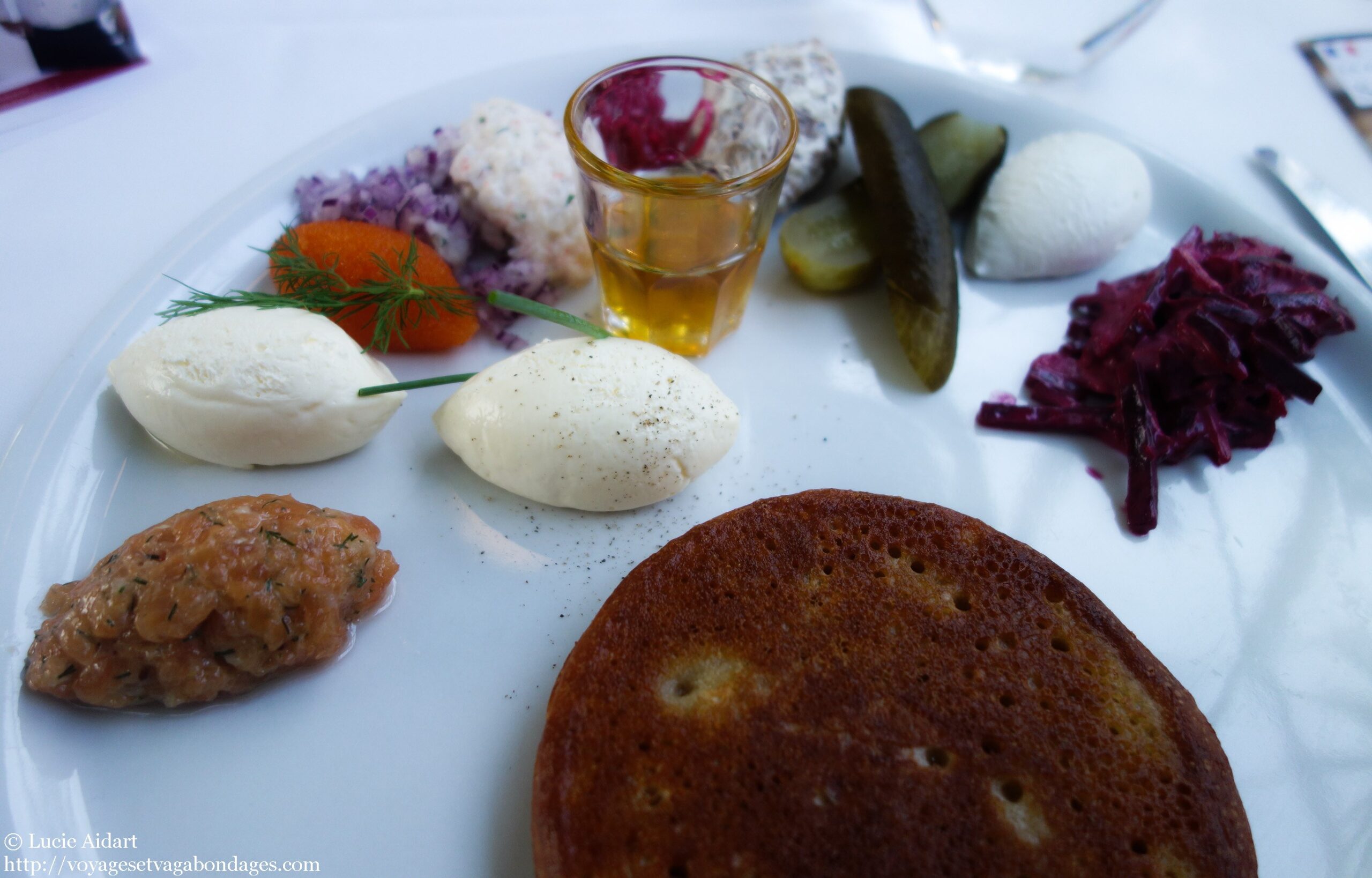 Helsinki est une petite ville à taille humaine, qu’il est facile de découvrir à pied ou en transports en commun. Située en bord de mer, l’eau y est très présente. Elle comporte également de nombreux parcs et ses habitants ne sont jamais loin d’un coin de nature pour échapper au stress de la vie citadine. Avec ses airs scandinaves et russes, la capitale finlandaise a une allure et une architecture toutes particulières qui la rendent si différente de ses comparses du Nord. La scène des restaurants et cafés semble très intéressante et c’est définitivement ce que j’explorerais à mon retour là-bas. Je suis bien tombée, car le mois de janvier est la saison des blinis. Je me souviens encore des blinis de Lasipalatsi et de ses sauces d’accompagnement. Tendres et dorés, ce sont les meilleurs blinis que j’ai pu goûté et les sauces au saumon et au fromage de chèvre étaient à tomber.