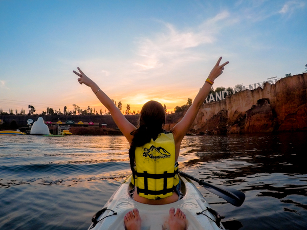 Il y a deux côtés. Le côté adrénaline, pour sauter à pieds joints dans le réservoir d’eau à quelques 10-15 mètres au-dessus de l’eau. J’avoue avoir été tentée par l’aventure, mais l’échelle brinquebalante pour remonter m’a dissuadée. De l’autre côté, c’est un mini parc d’attractions pour enfants et adultes. Sauf qu’en semaine, il n’y a presque personne et vous l’aurez rien que pour vous. Nous ne sommes venues qu’un après-midi, mais nous aurions pu facilement y passer la journée. C’est un peu cher, mais ça vaut le coût. La zipline au-dessus du canyon est surprenamment agréable et offre une jolie vue sur le canyon. Vous pouvez aussi faire du kayak gratuitement. Et puis, il y a tous ces jeux en plastique sur l’eau… château, saut… c’est vraiment très fun… jusqu’à ce que comme moi, vous tombiez et vous cassiez le dos.
