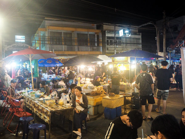 Situé en face de l’entrée principale de l’université (localisation exacte ici), ce marché a lieu tous les soirs et est très peu touristique. Vous y verrez surtout des étudiants thaï. Il y a de la nourriture à foison, des habits de seconde main et de quoi passer une excellente soirée: gaufres fourrées, sushis, nourriture thaï… il y a vraiment de tout!